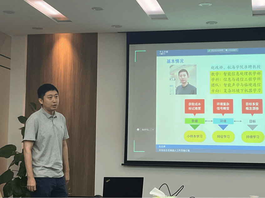 随后,廖方楼等19位青年教师通过线上和线下汇报结合的形式,每人5分钟阐述个人学历、学科专业等基本信息以及参与过的学生工作相关经历,然后从思想政治教育、日常教育管理、党团和班级班风学风建设、学业指导、创新实践等多方位进行讲解,并充分结合自身优势,围绕班级学风建设、深造率、出国交流率等方面给出了具体的思路方法,展现了各自的专业水平及教学能力。