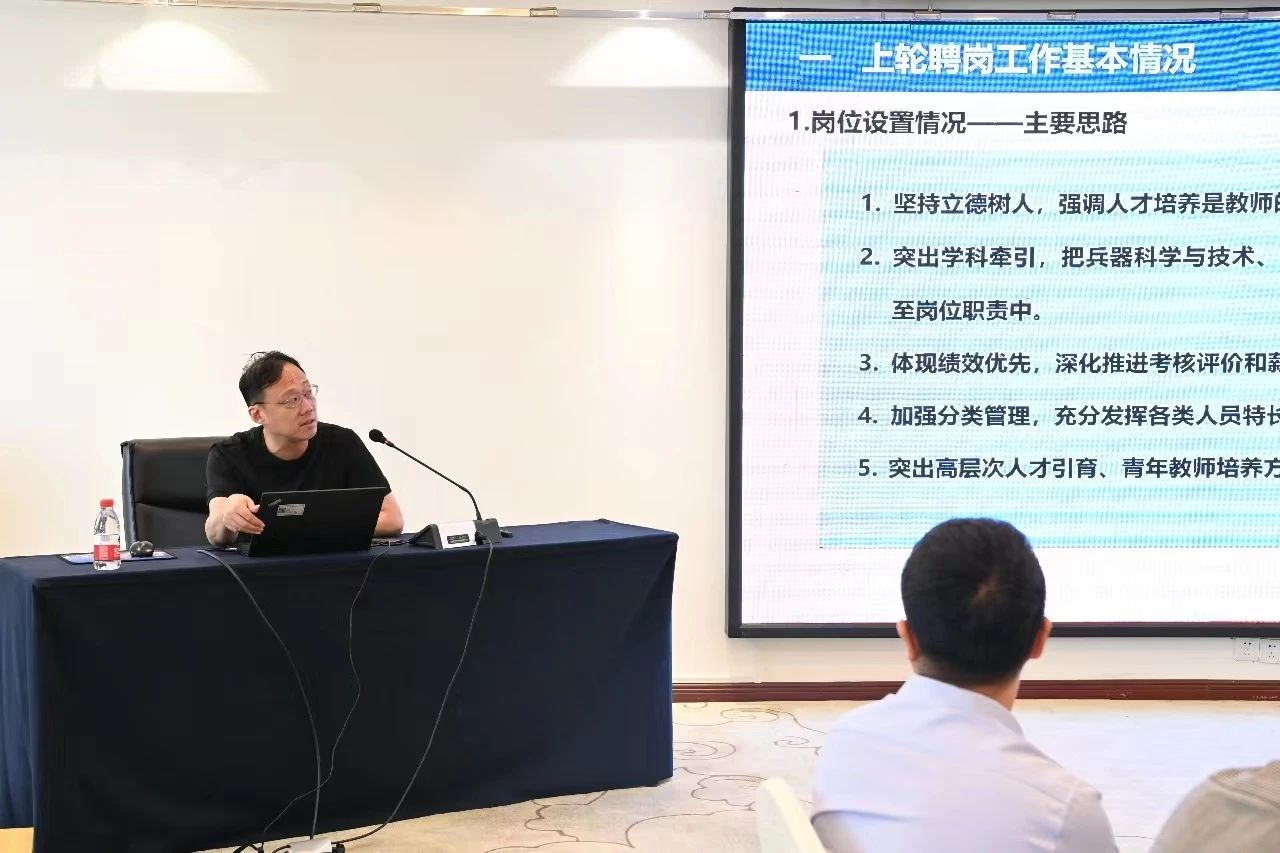首先,潘光做学院下一聘期岗位聘任工作思路研讨,围绕上轮聘岗工作基本情况、存在问题与改进措施、下一轮聘岗思路三方面展开。针对下一轮聘岗思路和意见,潘光提出,可以从优化岗位设置、优化岗位任务、强化激励政策和加强考核管理等路径开展工作。任重道远须策马,风正潮平好扬帆,新征程充满梦想与光荣。学院要继续强化人才培养要求,坚持立德树人,以国家需求为目标,以问题为导向,以新一轮岗位聘任为契机,为推动学院高质量发展贡献更多的智慧和力量。
