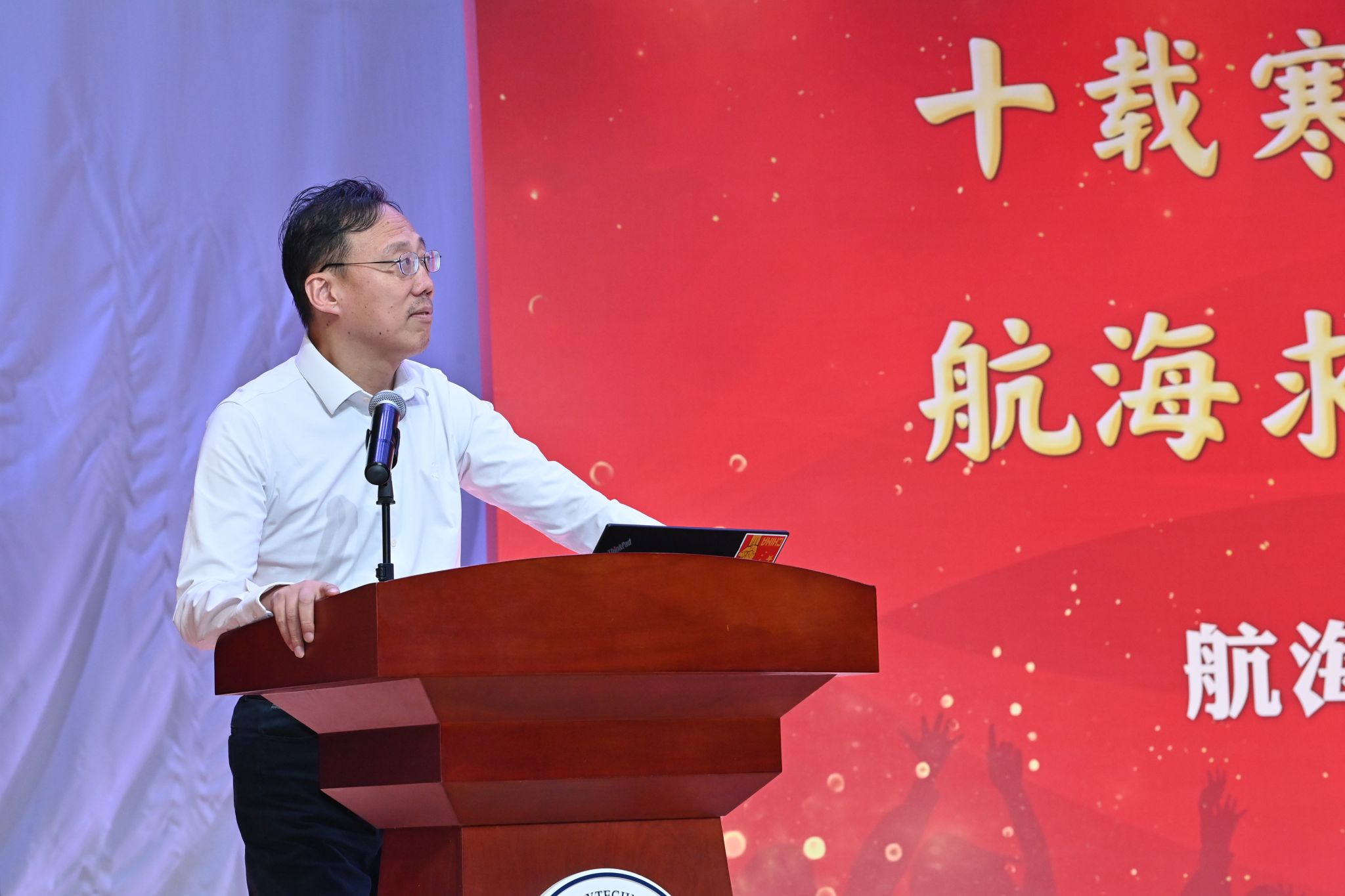 会议最后,孙华强寄语新生。起而行之,笃行不怠。围绕做人做事之道和海洋强国战略,孙书记以师长和学长的双重身份,帮助同学们拨开成长迷雾。他激励新生们树立远大理想,坚定报国之志;领悟弘扬“总师文化”,做“总师型人才”;尽快转变角色,端正学习态度;增进交流,培养独立人格;释放情绪,保持愉快心情。孙华强鼓励同学们立大志、明大德、成大才、担大任,努力成为堪当民族复兴重任的时代新人,让青春在为祖国、为民族、为人民、为人类的不懈奋斗中绽放绚丽之花。