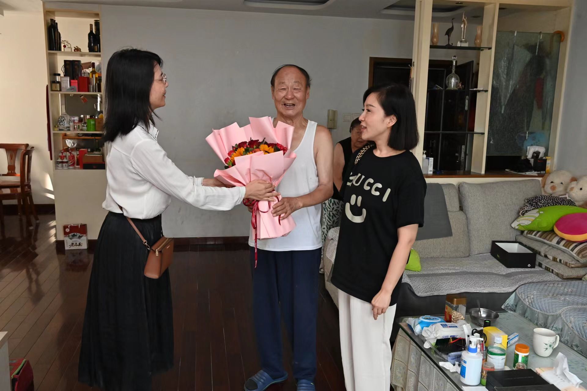 信息与通信工程教学部主任姜喆同志、301支部支委闫永胜、王士刚同志看望退休教师程刚、高贤荣、黄杏