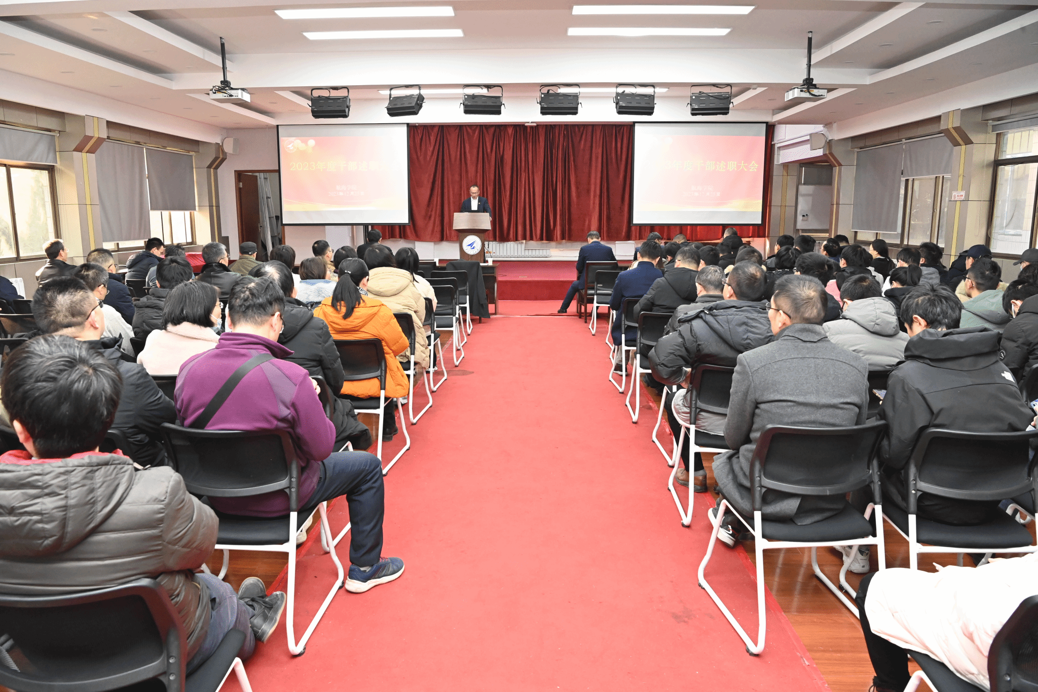 于东配楼召开2023年度干部述职大会。学院党委委员、各支部书记、各支部支委、全体教授、科研团队负责人、学科组主任、教学部主任及教师代表、学生代表共120余人参加会议。会议由党委书记孙华强主持。