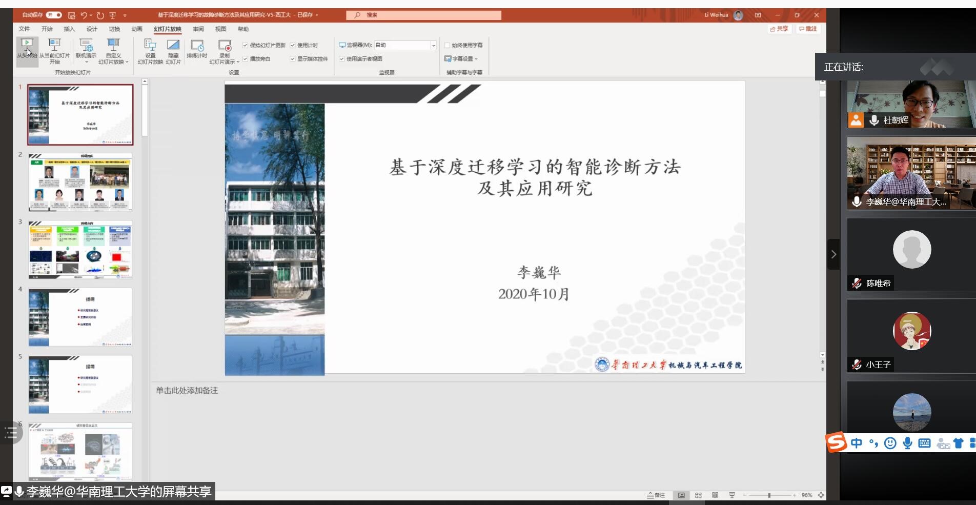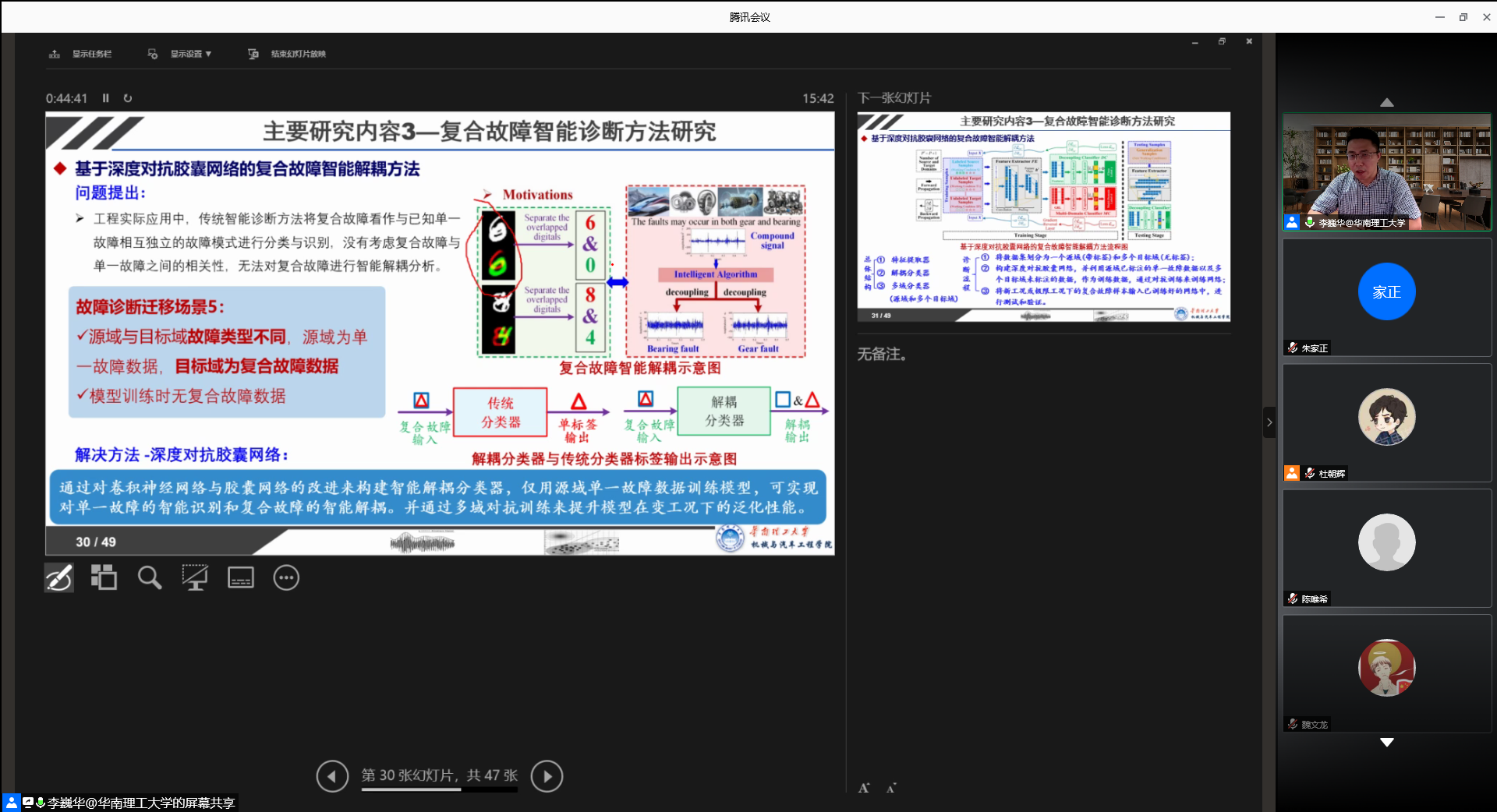 杜朝辉老师的邀请,为学院师生作了题目为《基于深度迁移学习的智能诊断方法及其应用研究》的线上学术报告并展开了深入研讨交流。会议由杜朝辉主持,学院30余名老师和学生参加了此次报告会。
