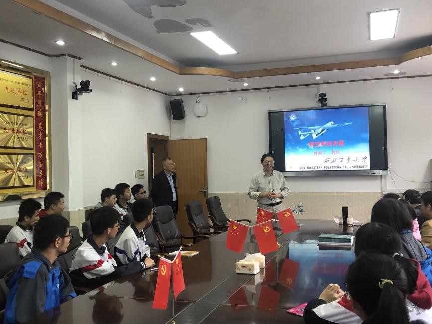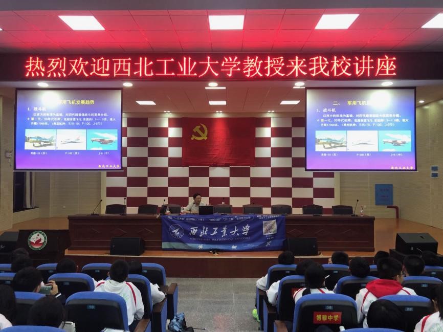 10月17日下午,我们马不停蹄赶往湖南衡阳地区开展招生宣传活动。晚上我们一行几人趁着高三学生晚自习的时间前往衡阳八中开展科普讲座,并赠送了喜报。我校航空学院钟诚文带领同学们走向航空航天的科技前沿,开展了题为《航空航天科技前沿》科普讲座。钟诚文分别从航空科技和航天科技两方面的发展进行了介绍,对民用、军用,国内、国外航空航天科技的历史、现状与发展趋势做了全面、细致的分析。两百多人的多媒体教室里座无虚席,并与学生进行了互动问答。