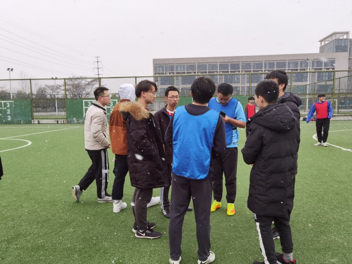 “声呐杯”小班足球赛进入第七比赛日,今天飒飒扬扬的大雪也无法遮掩同学们的激情和兴奋。在双方队长9班黄伟和7/8班联队何研的带领下,A组第三轮比赛在19级9班和19级7/8班联队之间打响。
