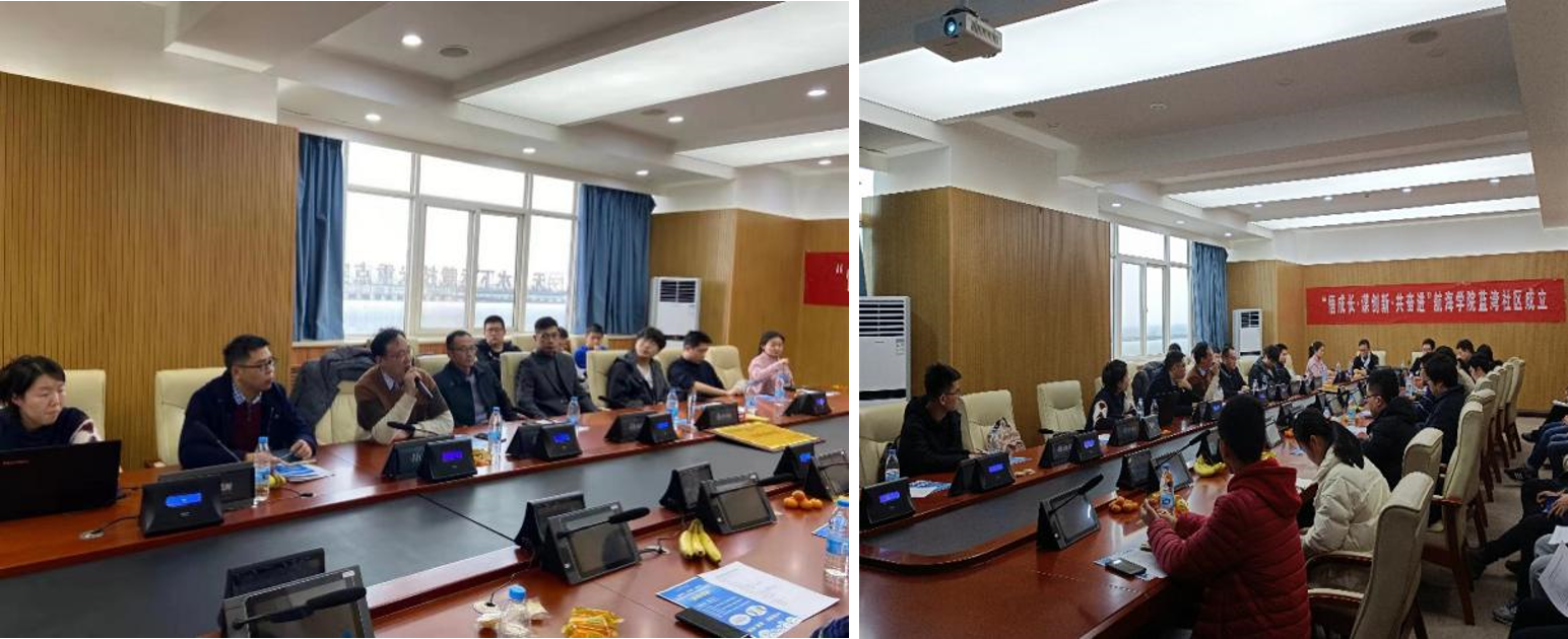 2020年12月14日下午14:30,在长安校区水池实验楼514会议室举行了“蓝湾社区”成立仪式暨双创经验分享交流会。邀请了2020年度第六届“互联网+”大学生创新创业大赛金奖、“挑战杯”中国大学生创业计划竞赛金奖及优胜杯获奖团队欧卡智能无人清洁船团队核心成员虞梦苓作为嘉宾,与学院青年学子分享他们的创业经验。学院院长潘光,党委书记孙华强,党委副书记王银涛,院长助理张龙出席了本次交流会,学生事务主管崔晓,院研究生会、学生会主席,以及20余名学生代表参加。会议由王银涛主持。