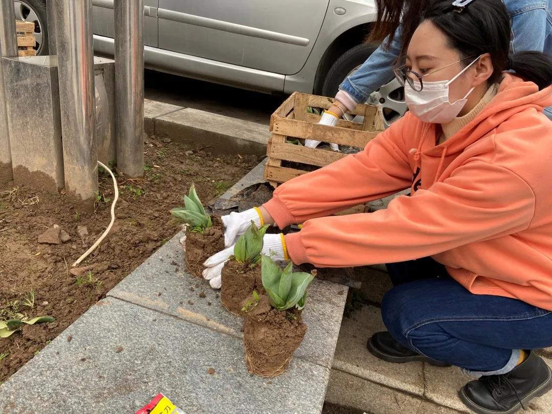 于3月11日上午8:30,在友谊校区新图书馆门前花坛组织郁金香等花卉种植志愿服务活动。本次花卉种植活动是后勤产业集团规划的学校迎接十四运校园美化增绿添彩工程的一部分,动画a片