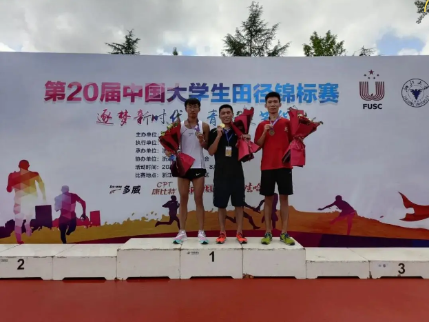 廖关兵同学以33:48.02的成绩勇夺男子甲组10000米项目金牌,共斩获一金一铜(男子甲组10000米冠军,男子甲组5000米季军),为学校和学院挣得了荣誉,向他表示祝贺!