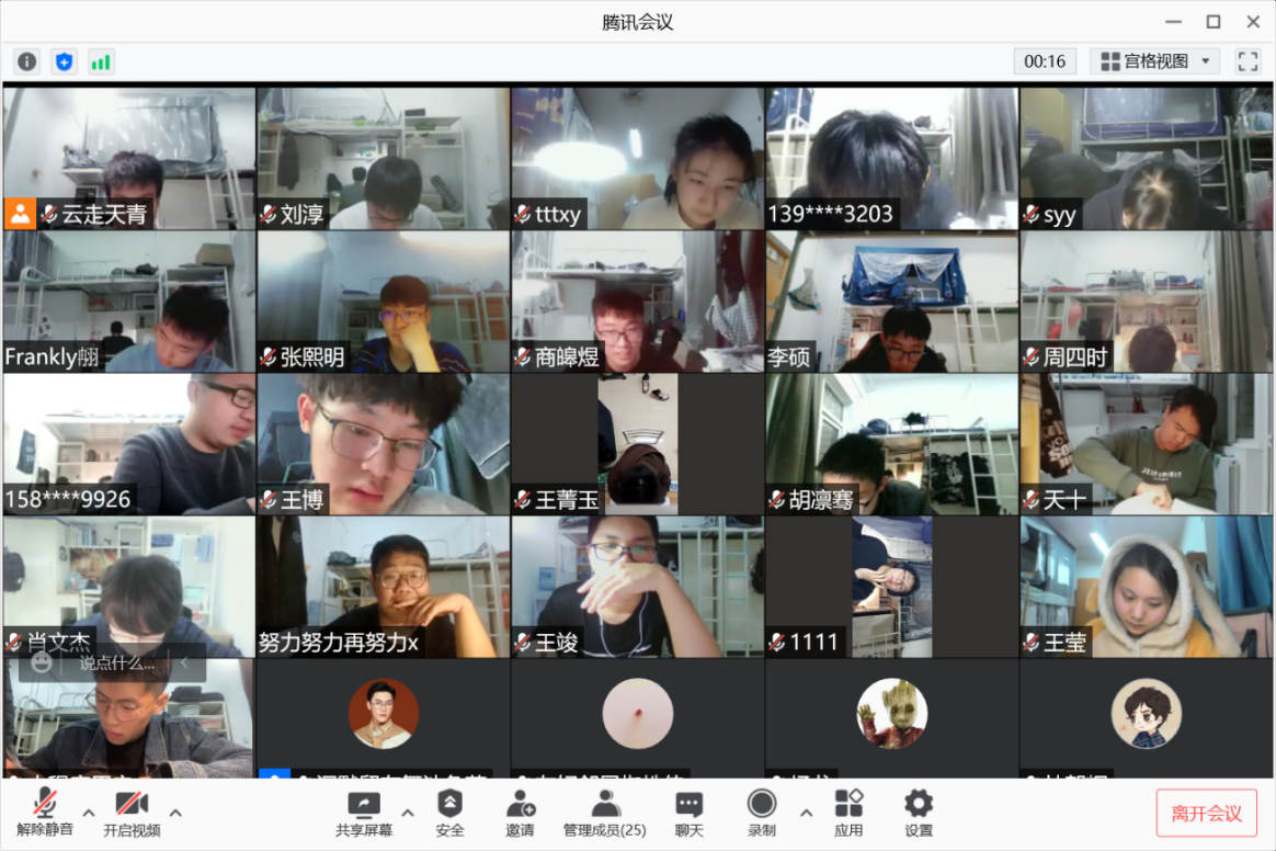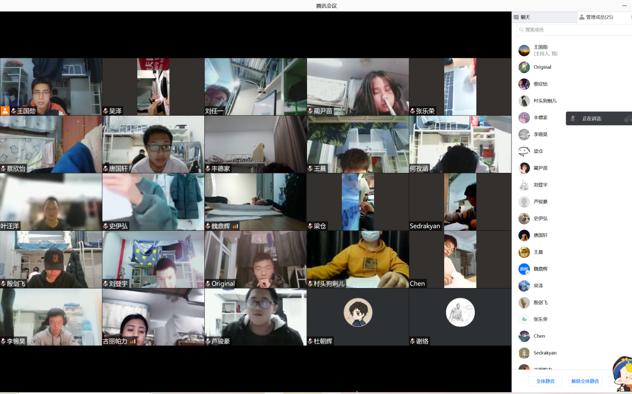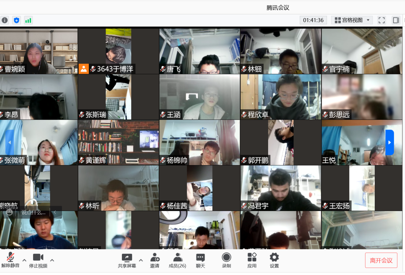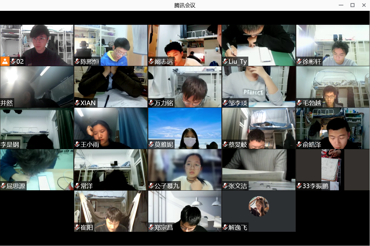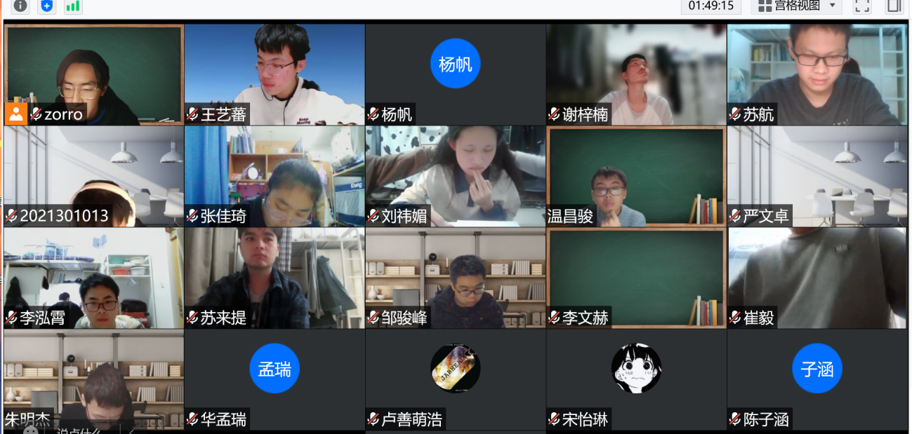 2021级全体同学参与线上考试。考试于晚上8:30开始,试题以电子版呈现给同学们,所有同学打开腾讯会议摄像头,全程公开考试,并由各班班主任线上监考,学院部分领导和杜朝辉巡查监考。