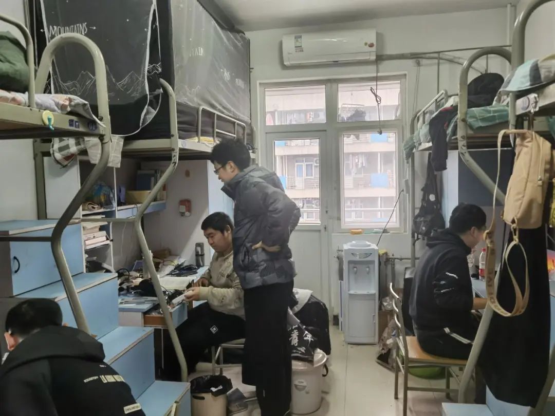 “云端自习室”已经告一段落。随着开学的到来,同学们陆续返校,继续准备着开学考试。为深入了解同学们的学习生活质量,22级辅导员李紫鹏来到男生宿舍,询问同学们在校学习生活情况,并向同学们提出宝贵的建议,让“云端自习室”从线上到线下,扎根到了校园环境里。