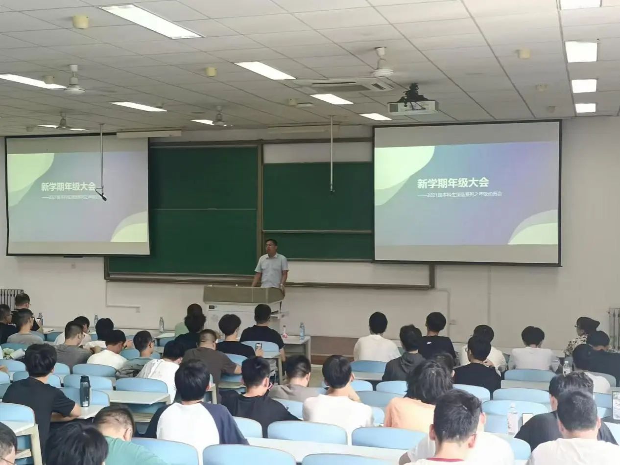 召开了2021级本科生新学期年级深造动员会。党委副书记王银涛、院长助理耿云辉、任树伟,班主任代表牛云、辅导员赵维娜以及全体2021级本科生参加会议。会议由赵维娜主持。
