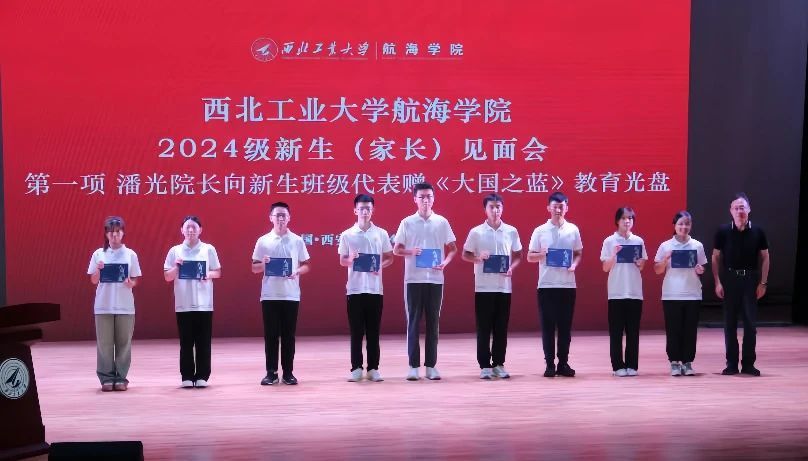 赠礼仪式,播种希望。会议伊始,潘光院长向新生班级代表赠送了《大国之蓝》教育光盘,这不仅仅是一份礼物,更是承载着对莘莘学子的深切期望与厚爱,引领他们勇往直前,坚持不懈地进行学习与探索。