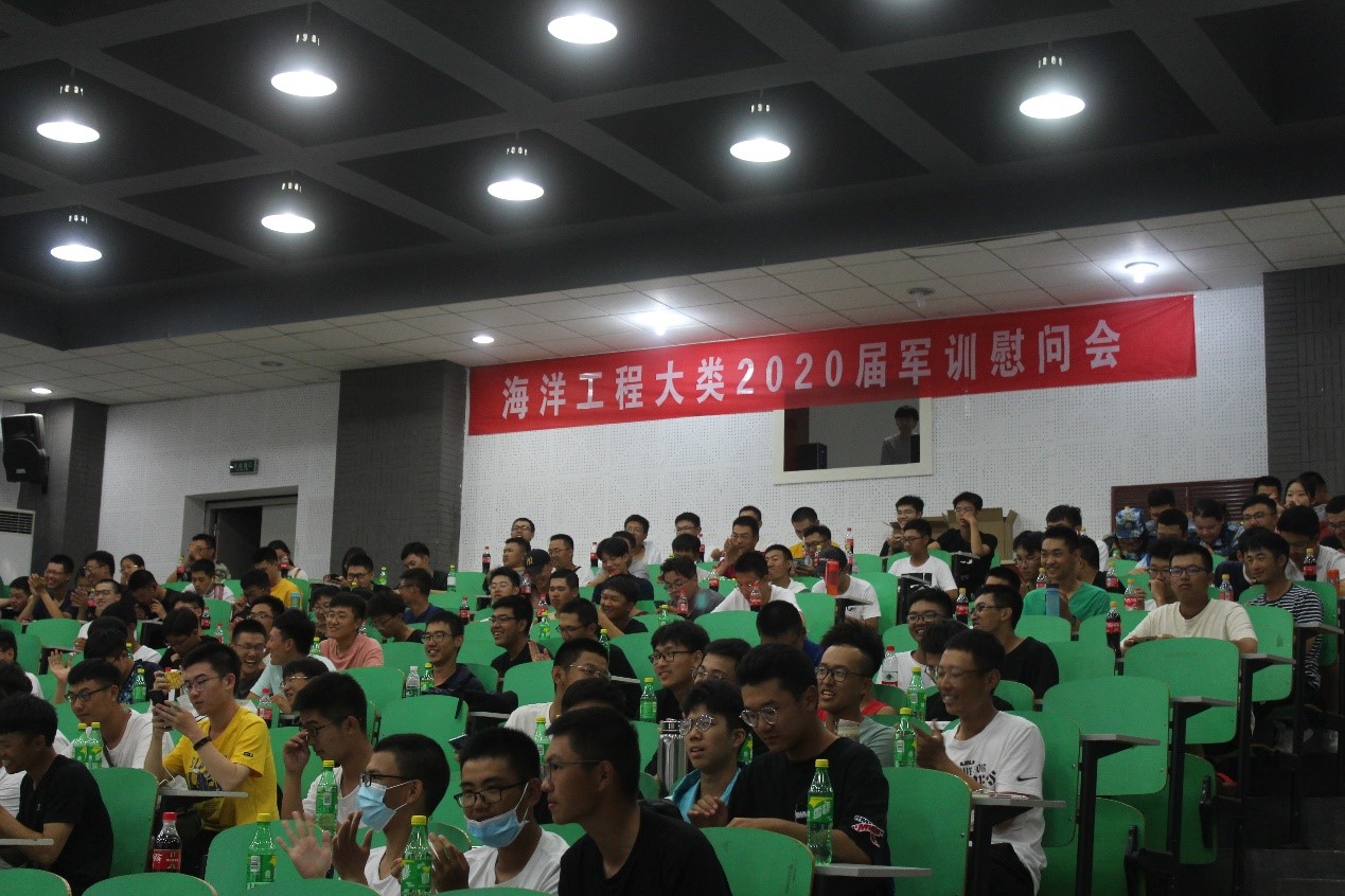 院长助理张龙、学生事务主管崔晓、2020级海洋工程类辅导员崔晓东,以及军训教官代表出席本次活动。全体2020级海洋工程类新生观看此次慰问演出。