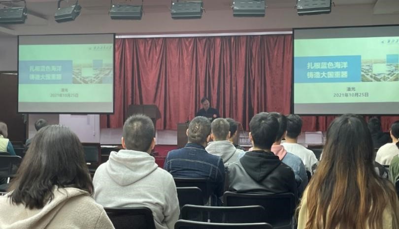 潘光从纪念辛亥革命110周年、国家海洋强国战略的思考、自主水下航行器创新团队三个方面,带领学员对习近平新时代海洋强国战略进行了深入学习,为师生们带来了一堂深刻而振奋人心的党课、思政课。