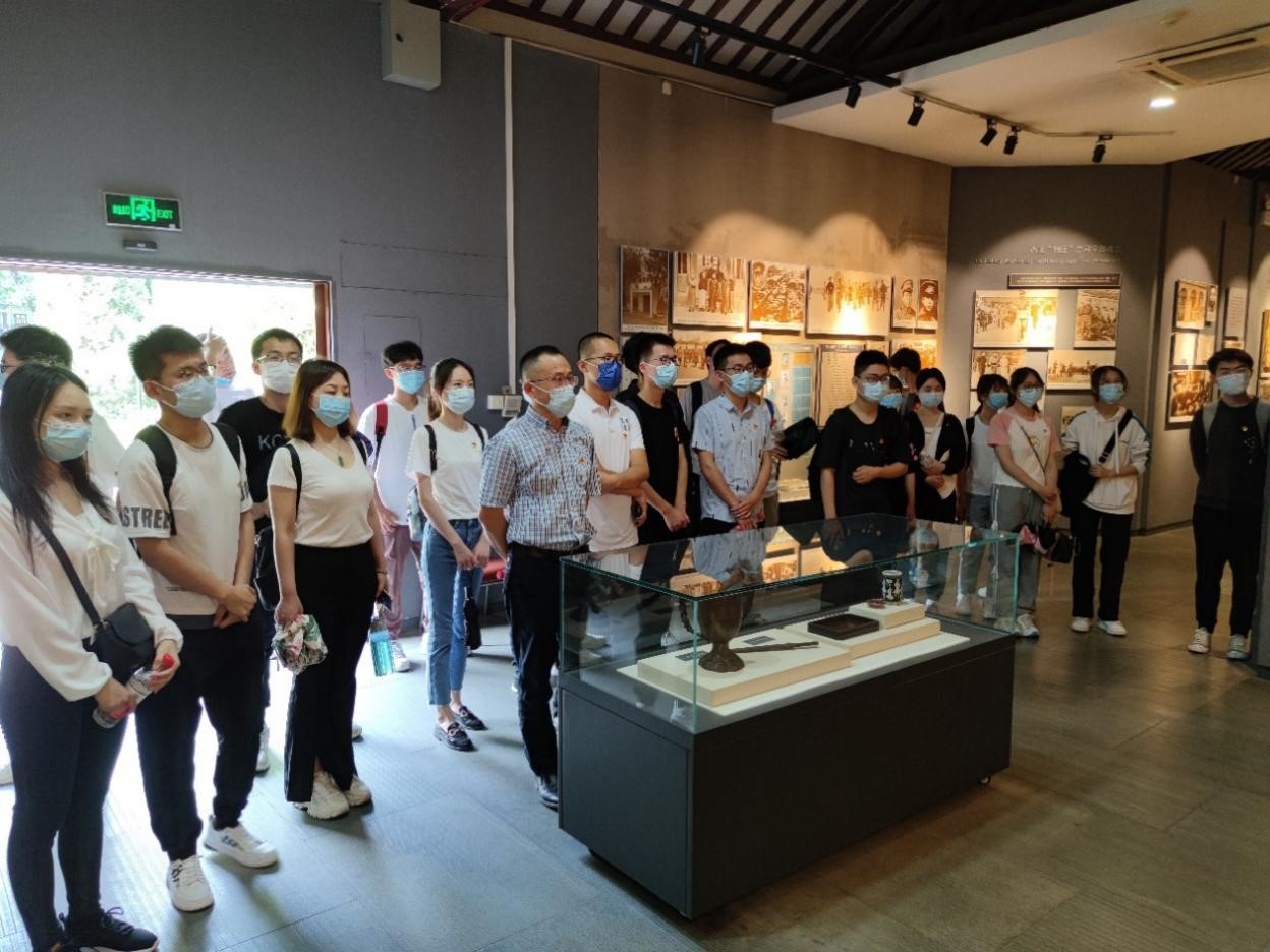 党委书记孙华强、党委副书记王银涛、专职辅导员张晓燕、学生工作办公室主任李娅、秘书赖慧参加了此次活动,与同学们共同参观了纪念馆,孙华强现场为师生上了一堂生动的“微党课”。