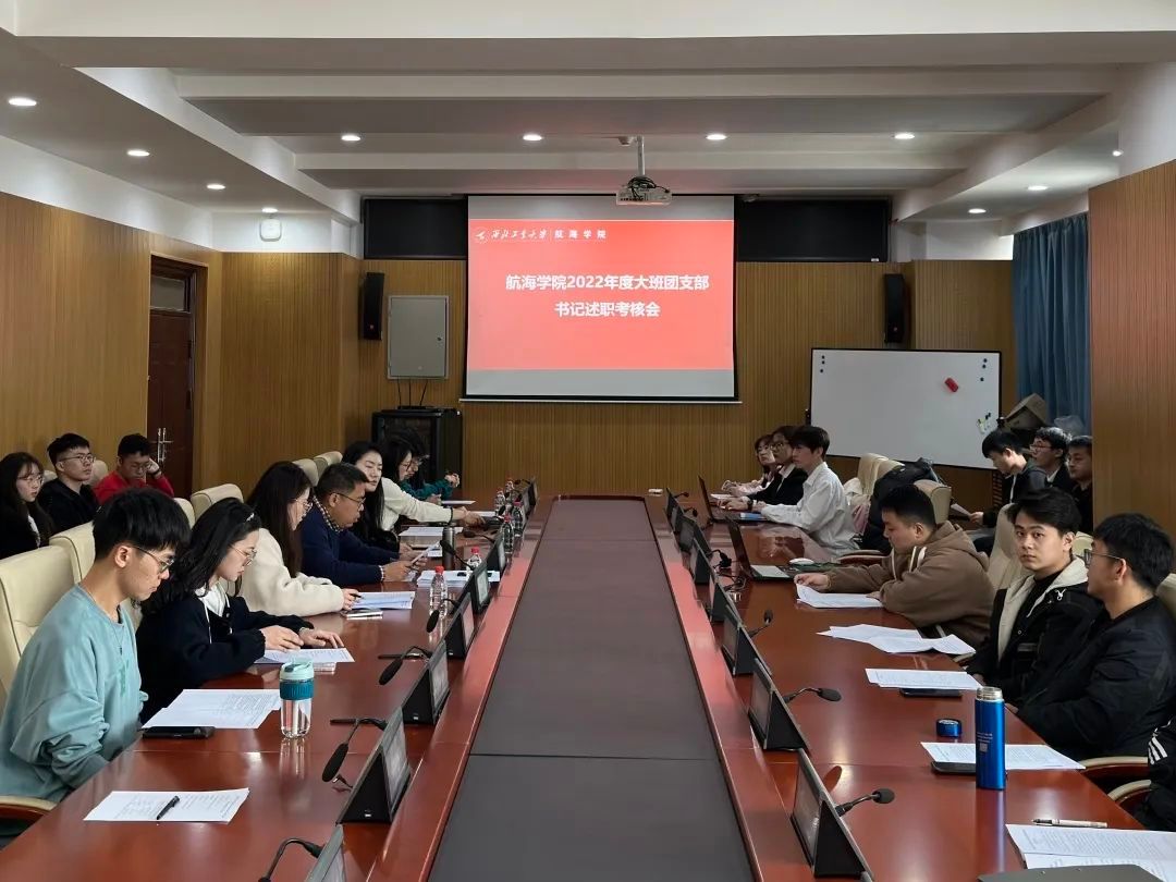 会上,学院7名大班团支部书记依次开展现场或线上述职,围绕团支部担负直接教育团员、管理团员、监督团员和组织青年、宣传青年、凝聚青年、服务青年的职责,从大班团支部概况、工作开展情况、存在问题及整改措施等方面汇报2022年度工作及未来工作计划,着重对深入学习贯彻党的二十大精神、共青团推优入党等重点工作的落实成效进行汇报。评委根据述职内容进行打分,并为优秀大班团支部书记颁发证书。