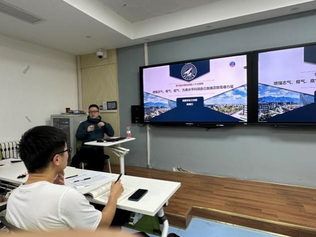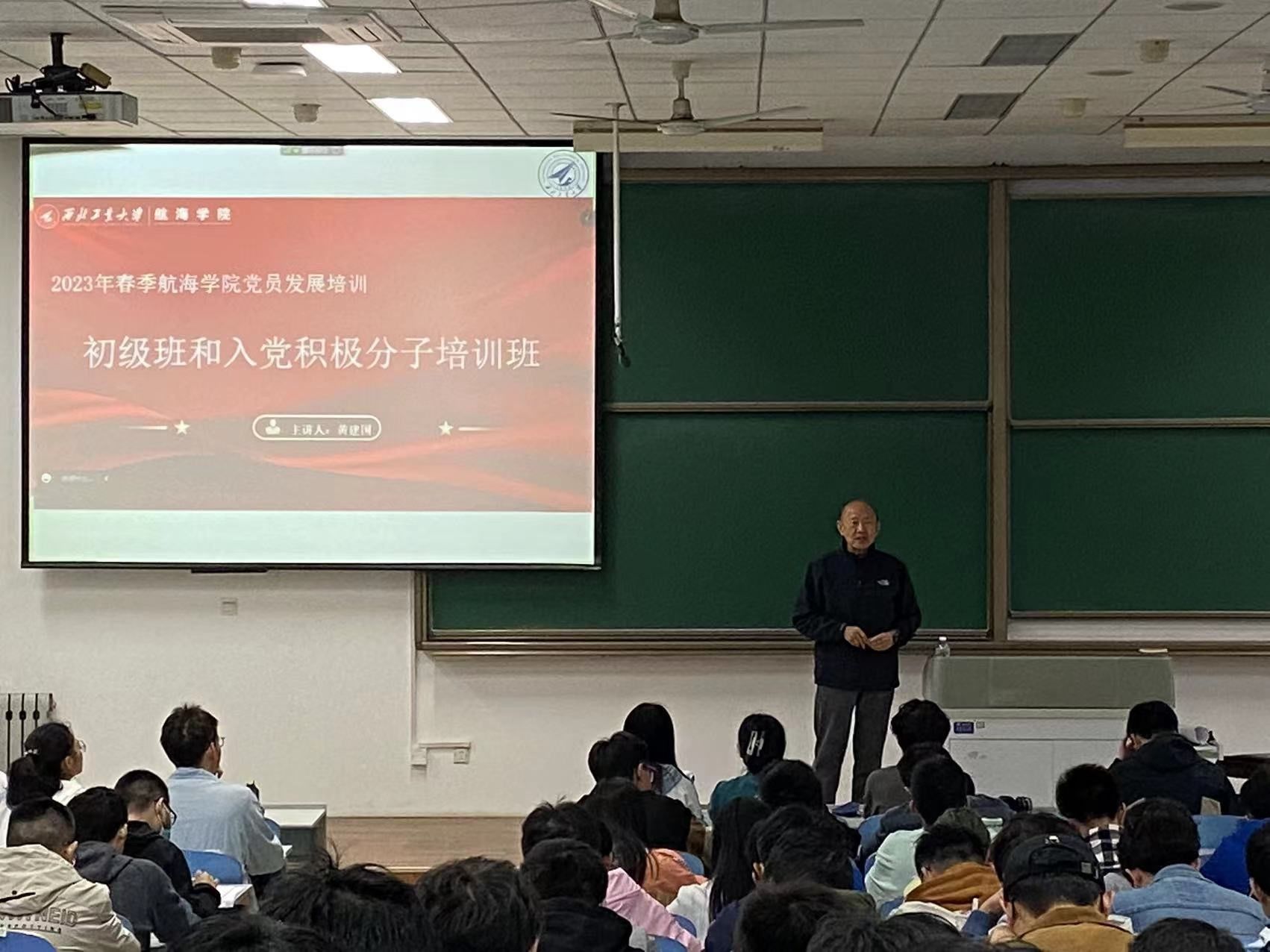 ,热爱航海专业”和“对青年的寄语和期望”四个方面展开,帮助学员们了解党员的责任与义务,树立正确的入党动机,鼓励学员们要继承前辈艰苦奋斗的航海精神。最后,他希望同学们能珍惜青春好时光,不负国家和父母厚望,立大志、成大才。