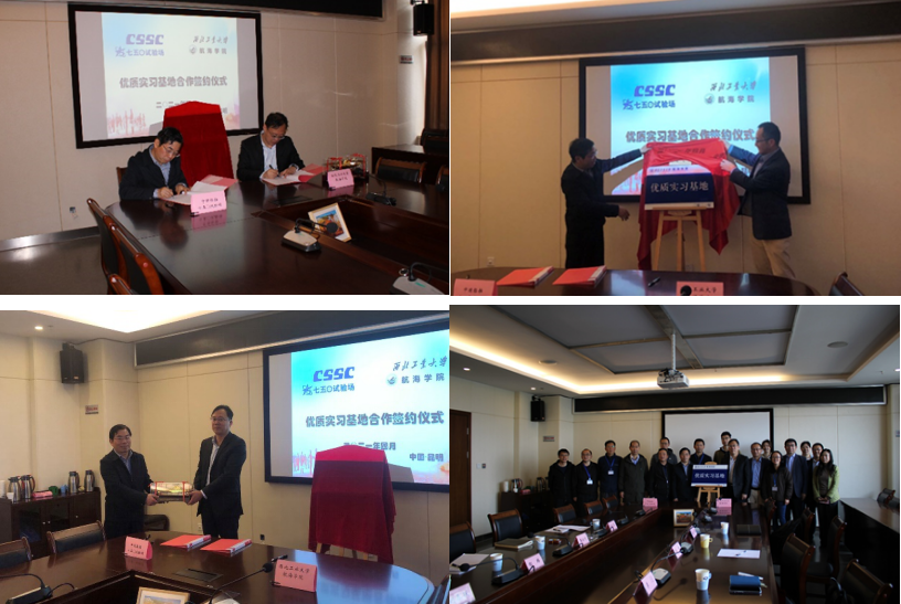 院长潘光带队赴昆明先后与中国船舶集团705所昆明分部、中国船舶集团750试验场和昆明船舶设备集团有限公司三家行业内单位举行实习基地签约授牌仪式。