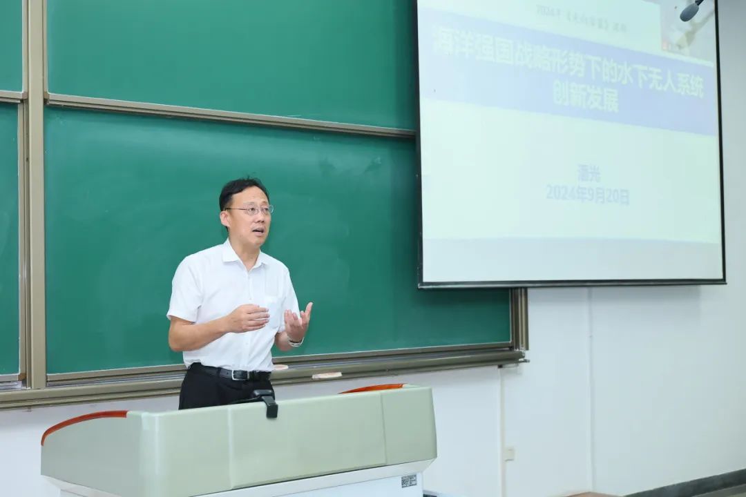 院长、博士生导师、国家级人才、“无人水下运载技术”工信部重点实验室主任潘光走上讲台,以《走向深蓝——我海洋强国战略形势下的无人系统创新发展》为主题进行授课。动画a片