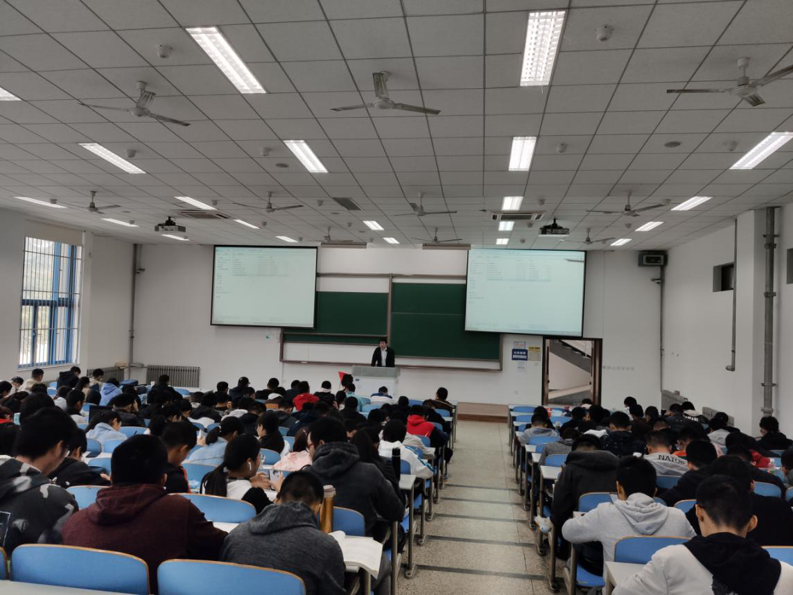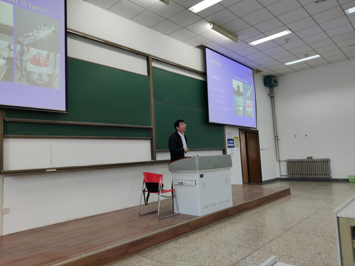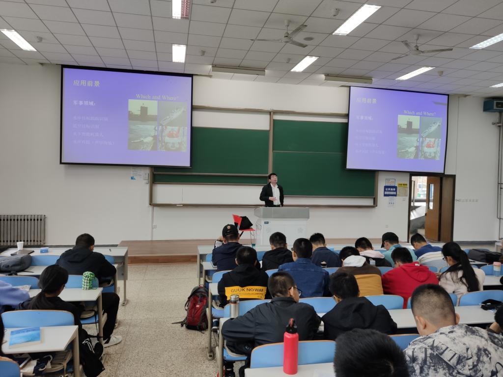 副院长曾向阳教授为2019级新生们讲述了海洋工程大类人才培养体系和水声对抗中的瓶颈技术——智能水中目标识别技术。
